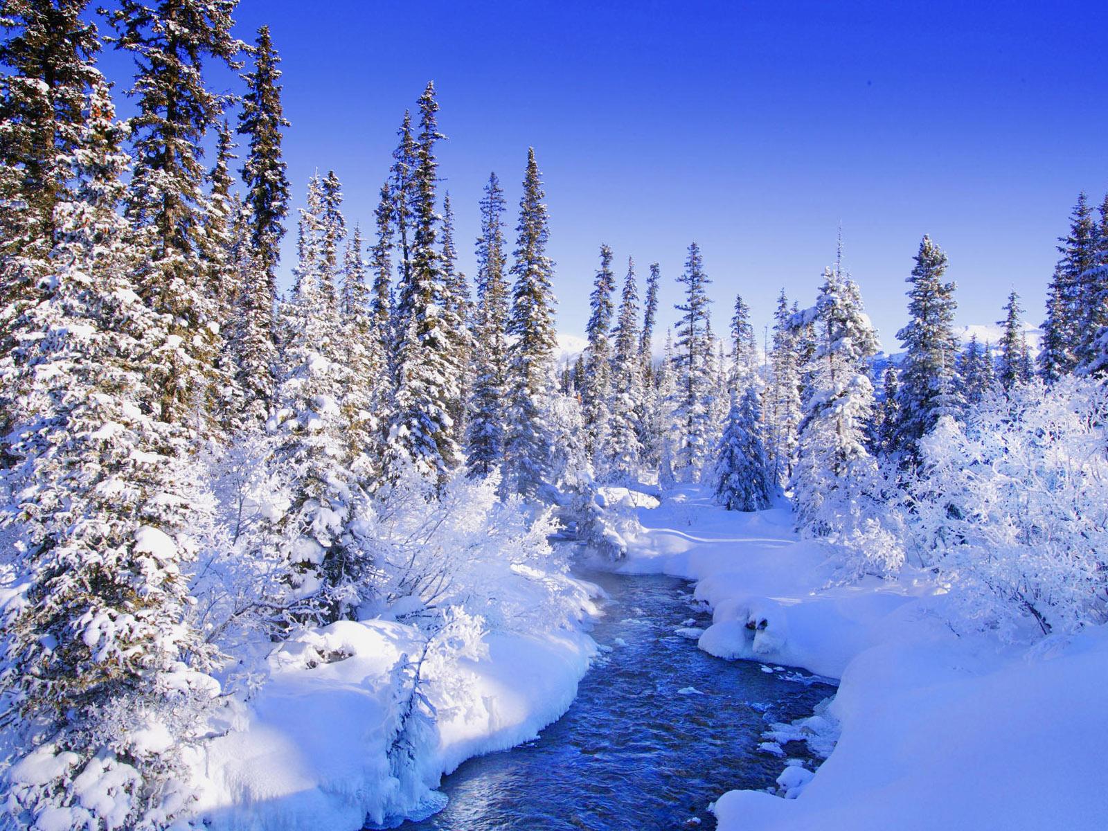 Wallpaper Winter Forest River