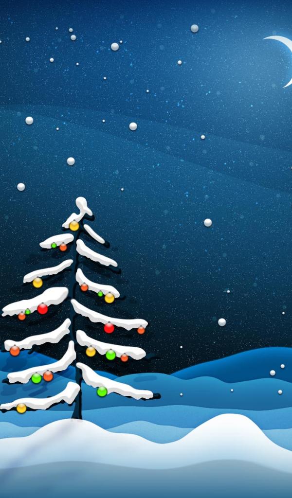 Wallpaper Beautiful Christmas tree with a variety of toys in snowy weather on Christmas