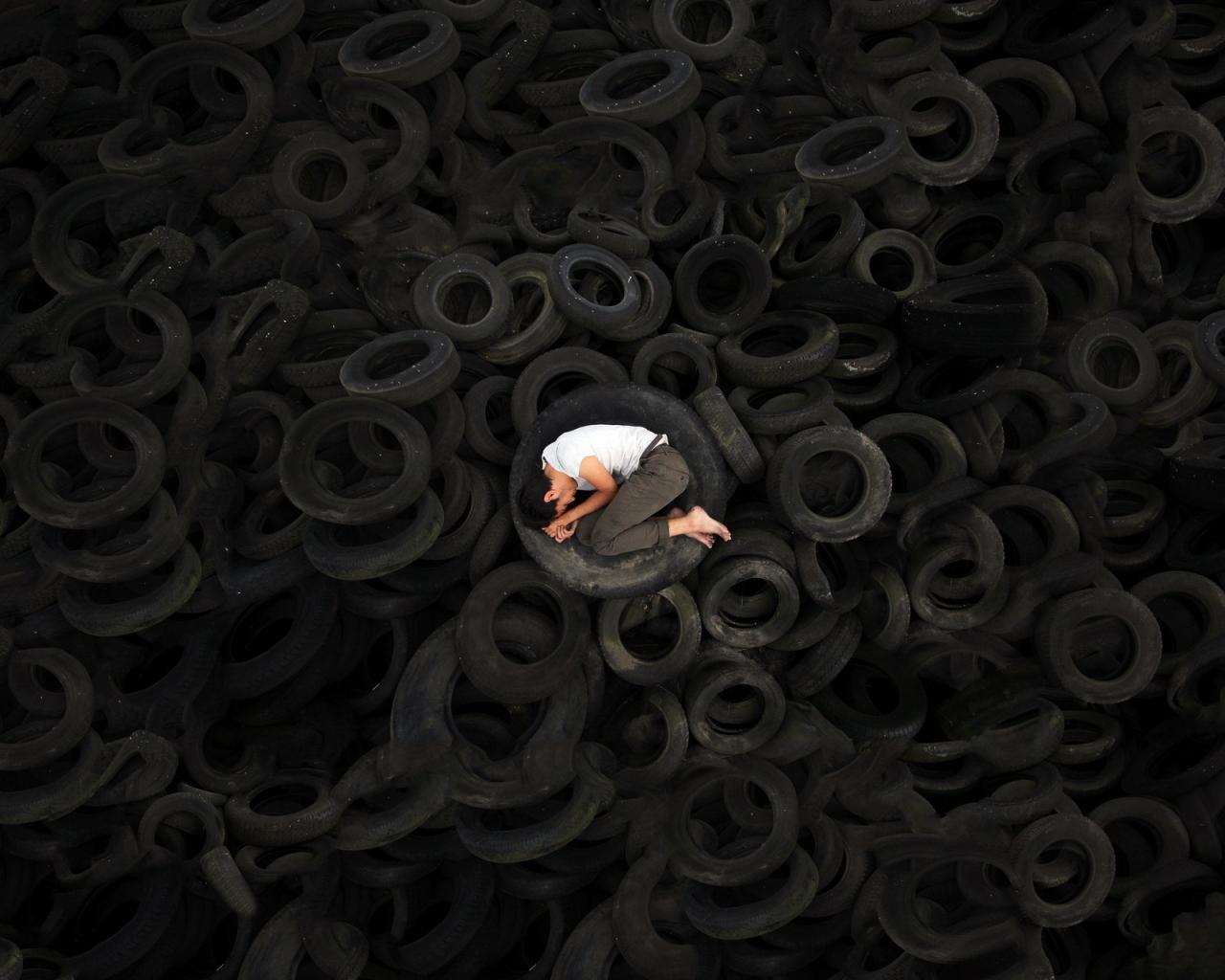 » Wallpaper The guy lies on the tires