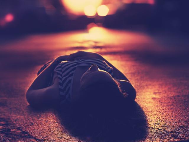 Wallpaper Girl lying on the pavement