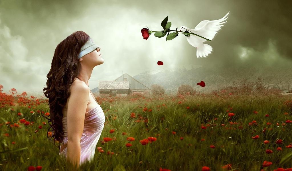 Wallpaper Grass, Pigeons, Long hair