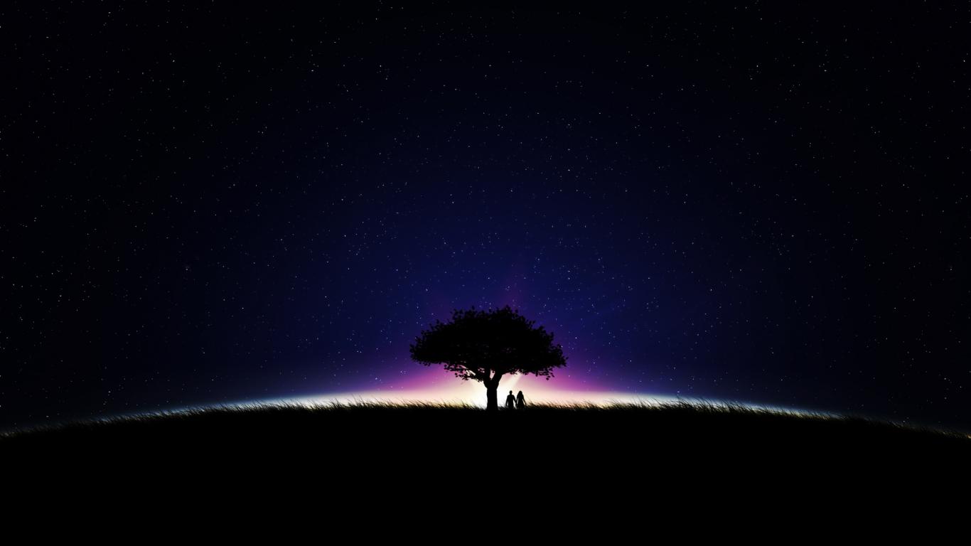 Wallpaper Sky, Trees, Night, Cute couple, Stars