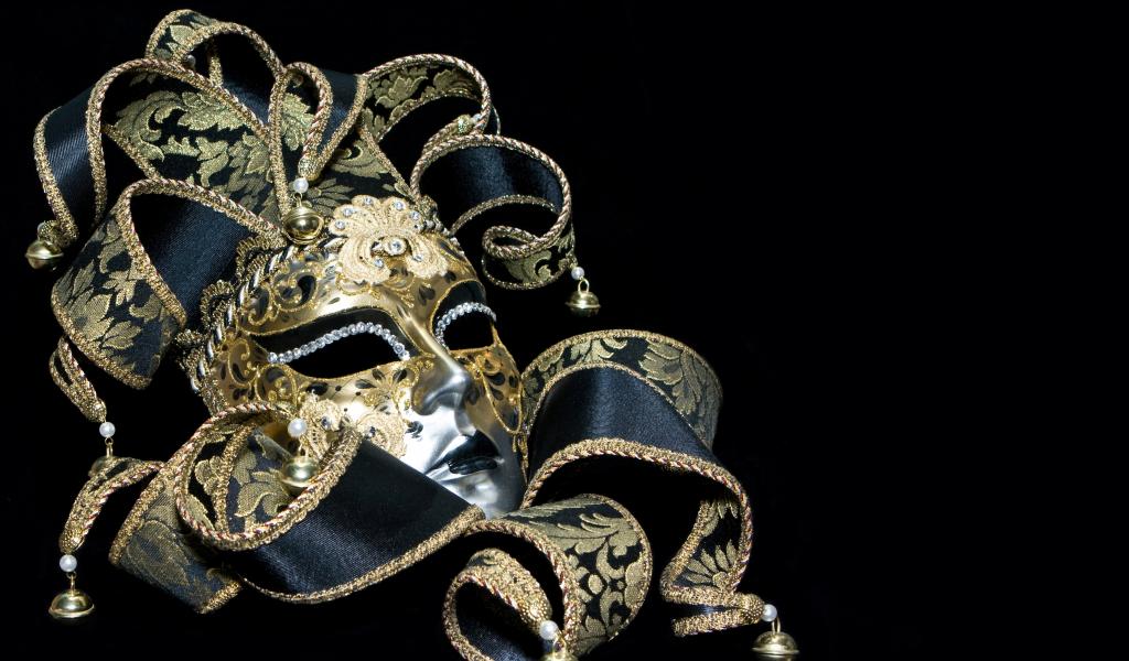 Wallpaper Black background, mask, ribbon, Bellflowers