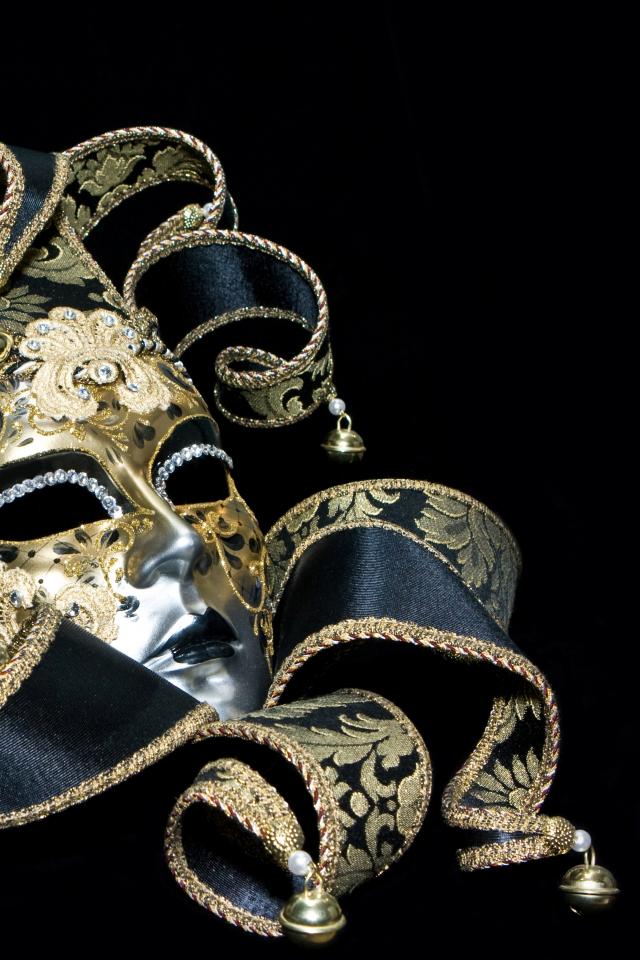 Wallpaper Black background, mask, ribbon, Bellflowers
