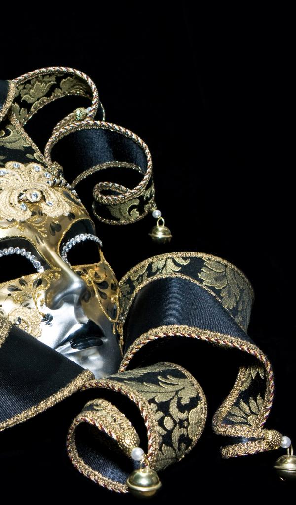 Wallpaper Black background, mask, ribbon, Bellflowers