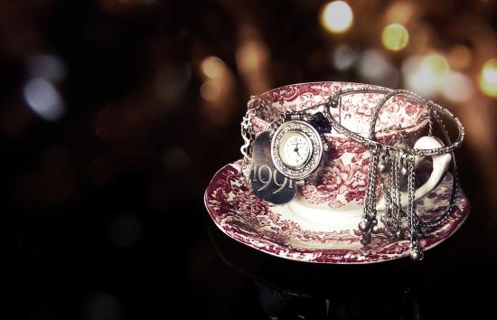 Wallpaper Pocket watch, Black background, saucer