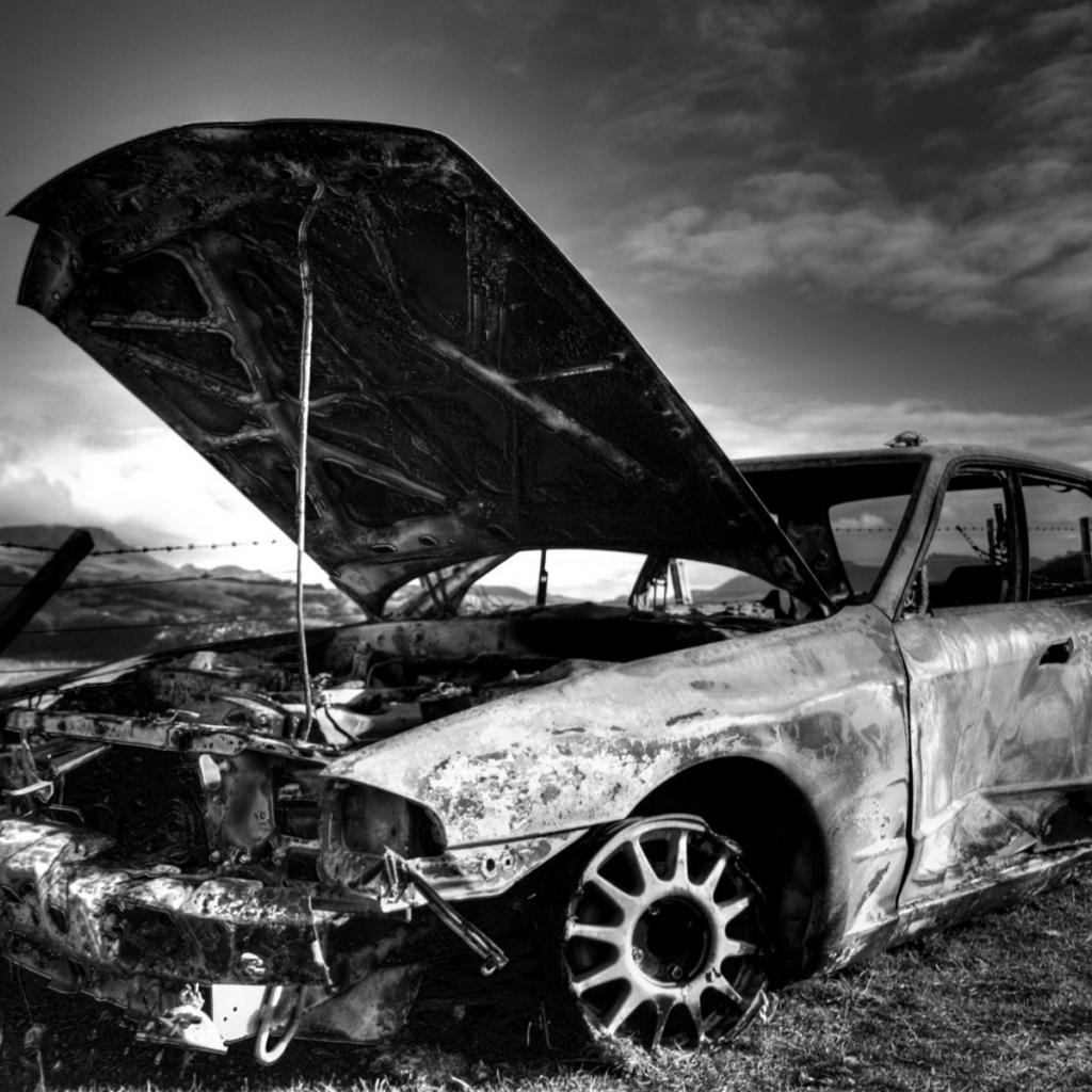 Wallpaper Old burned car