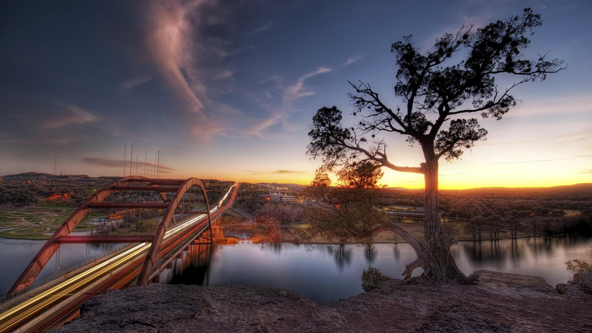Wallpaper Bridge through the river