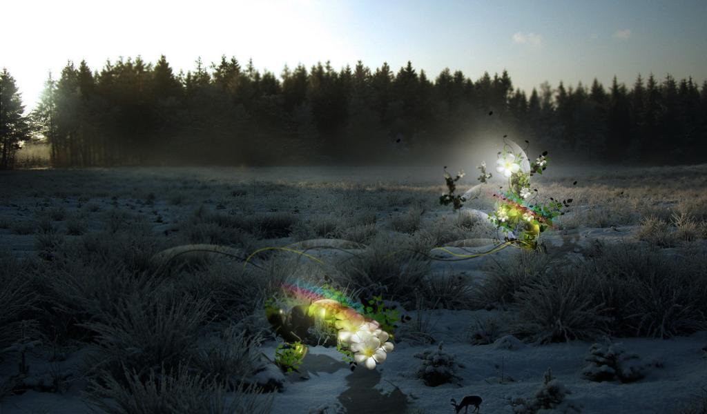 » Wallpaper Flowers in winter landscape