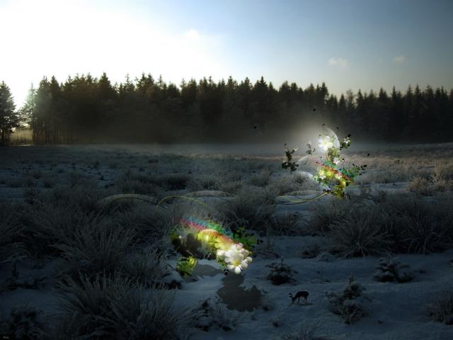 » Wallpaper Flowers in winter landscape