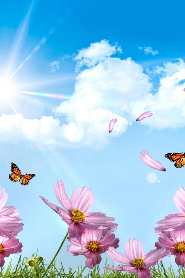 Wallpaper Butterflies and petals