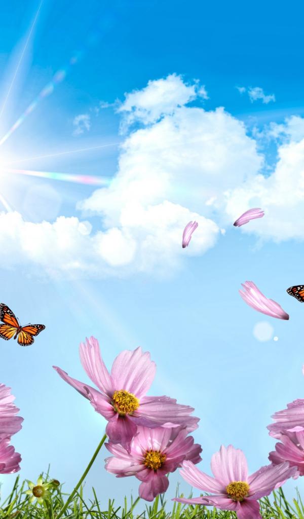 Wallpaper Butterflies and petals