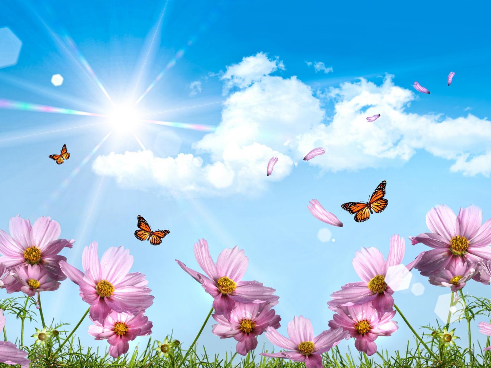 Wallpaper Butterflies and petals