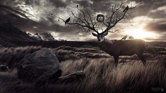 Wallpaper Deer horns trees