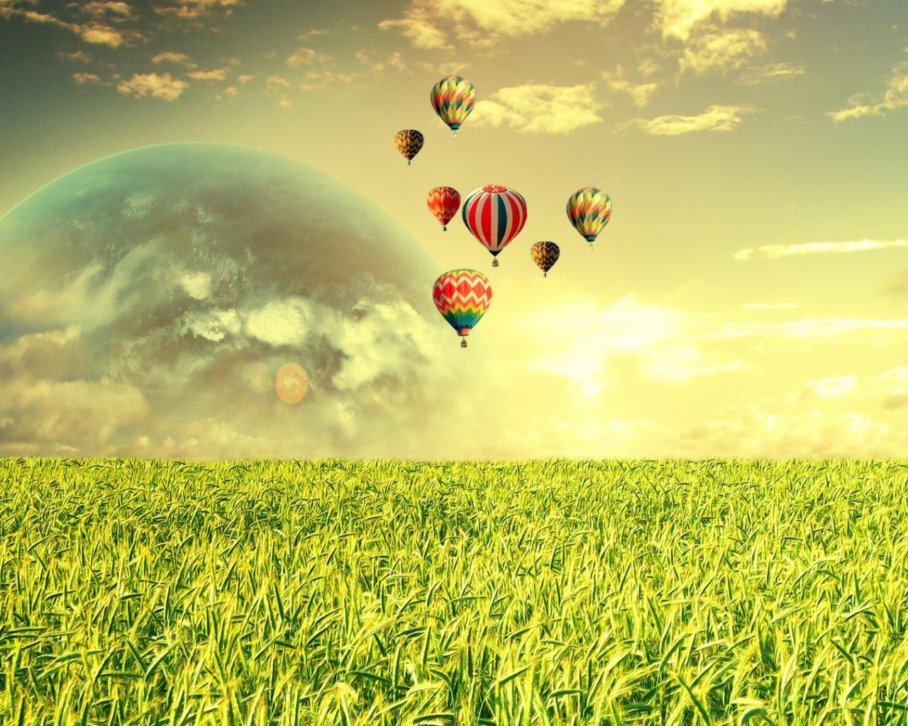 Wallpaper Balloons above the field