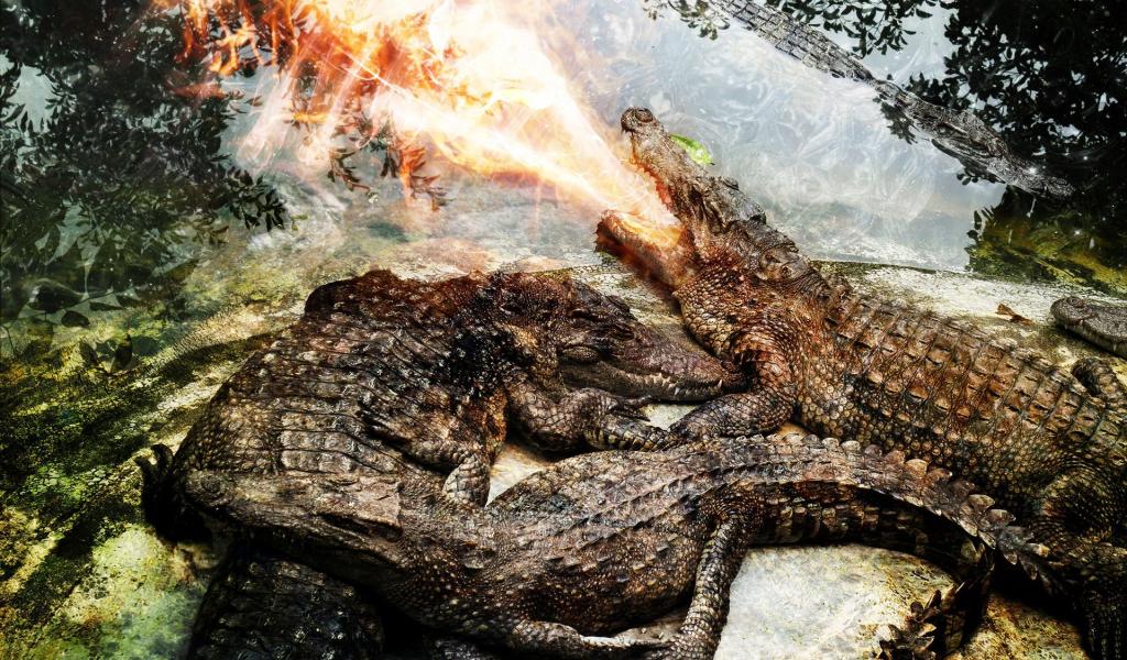 Wallpaper Crocodile spit fire