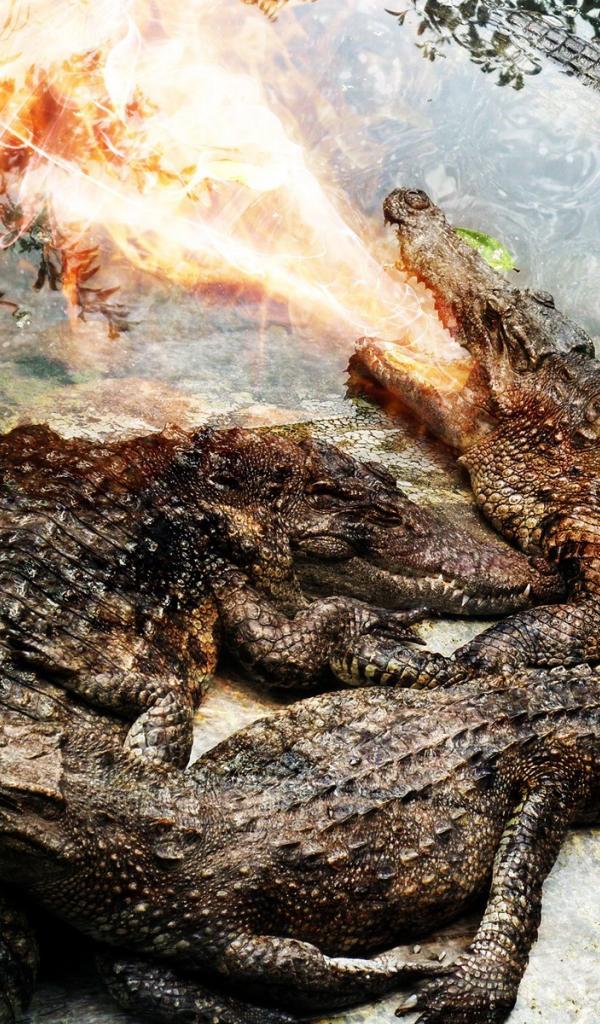 Wallpaper Crocodile spit fire