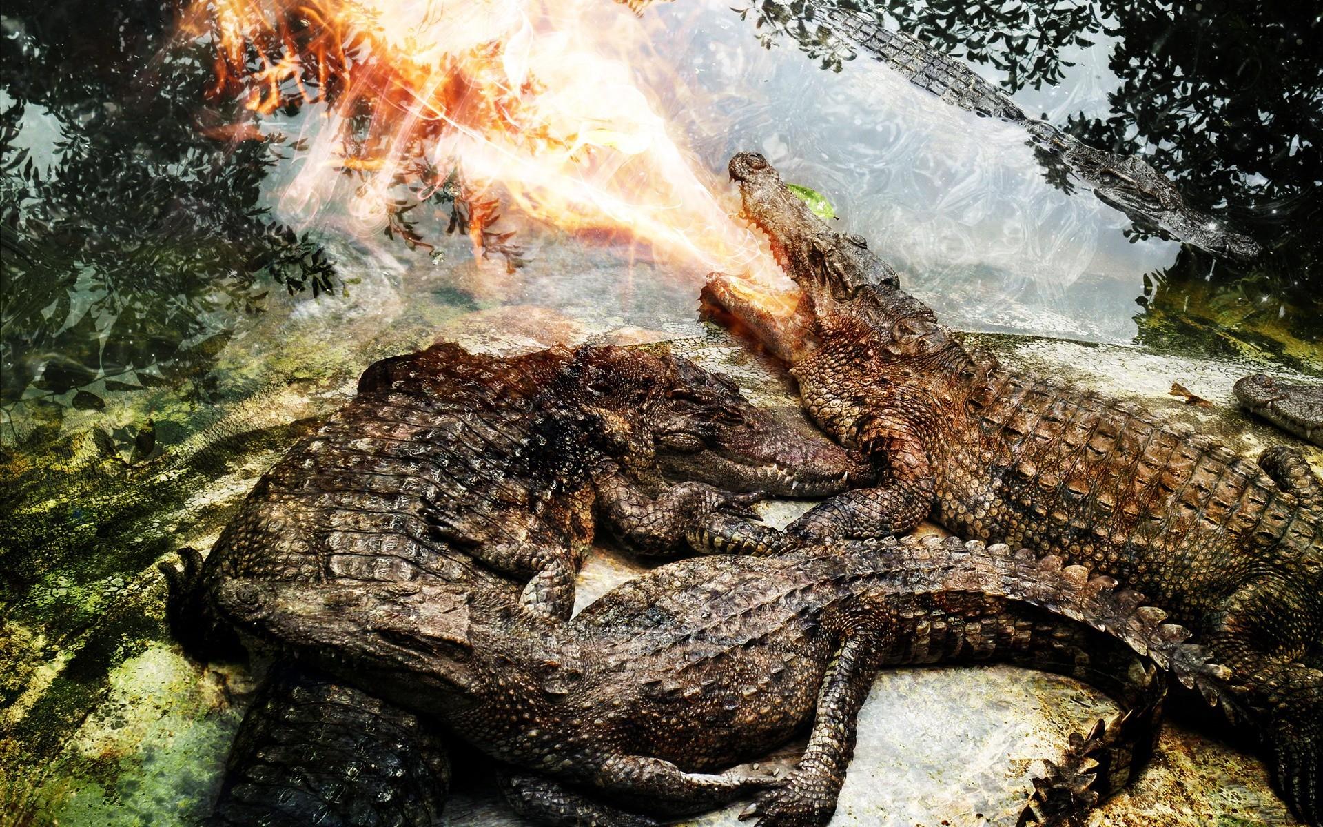 Wallpaper Crocodile spit fire