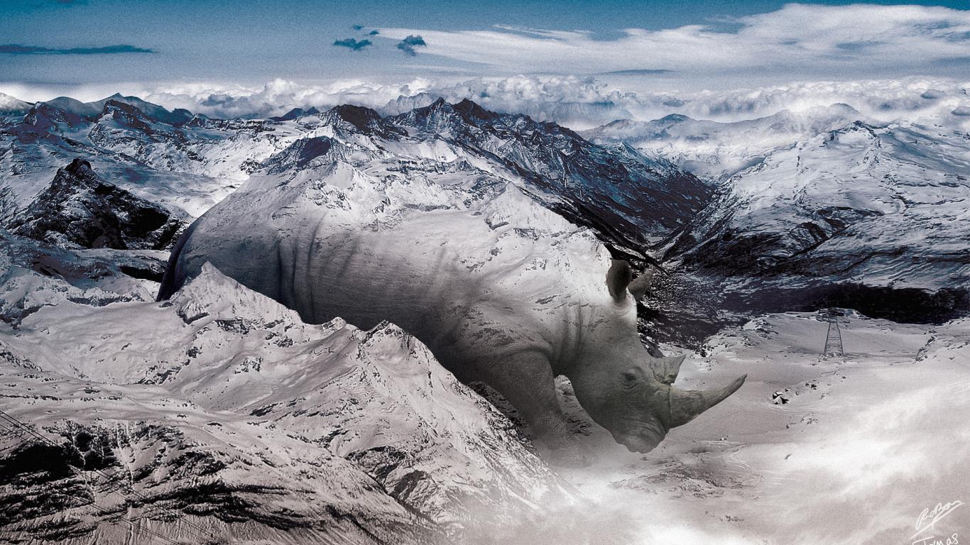 Wallpaper Rhino in the mountains