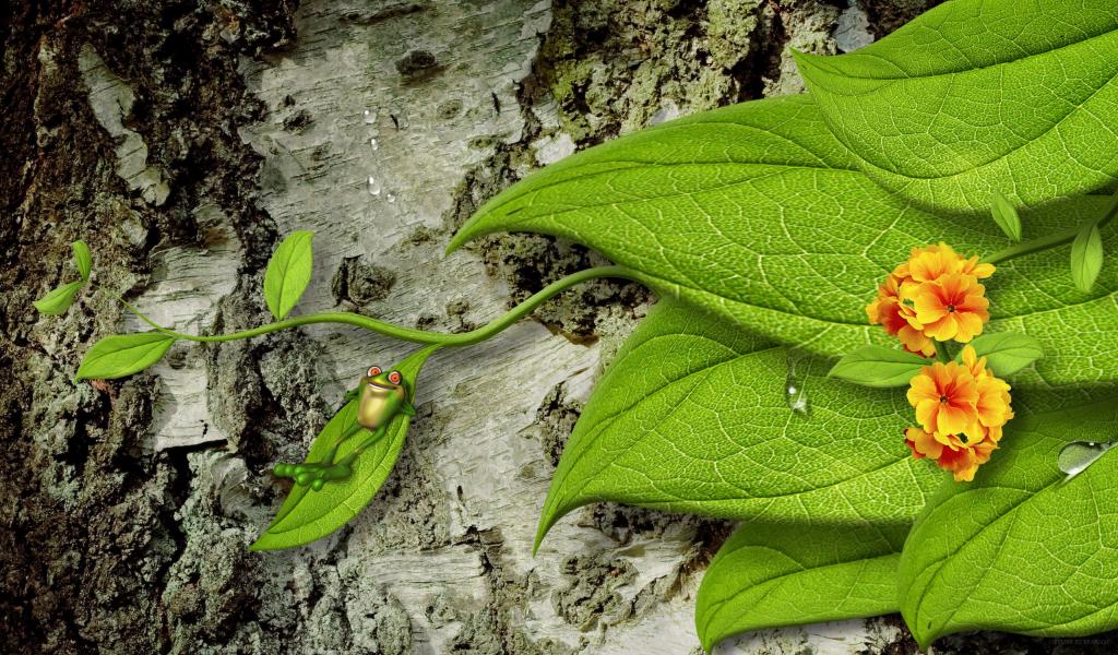 Wallpaper Frog on green leaf