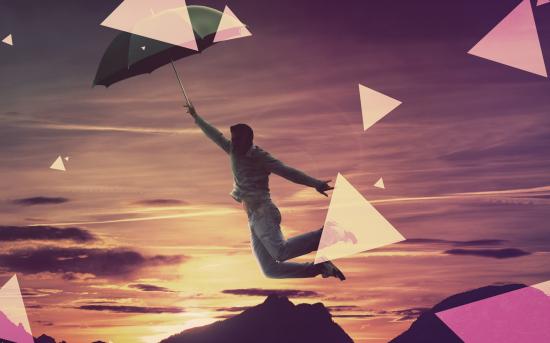 Wallpaper Man flies on umbrella