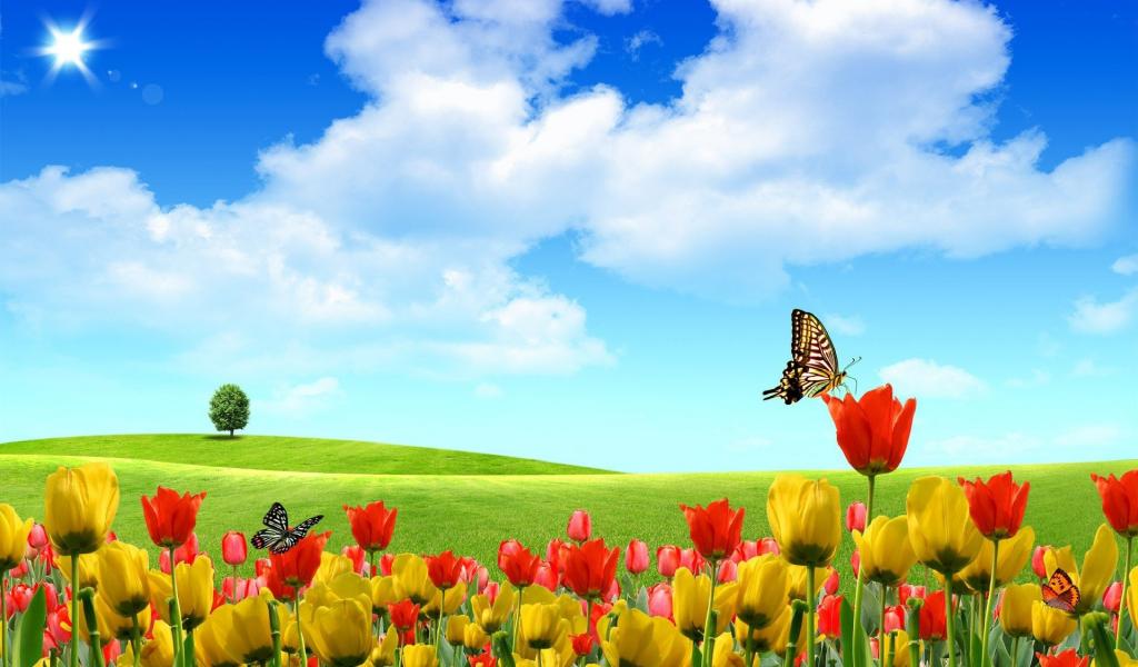 Wallpaper Abstract butterfly-tulips