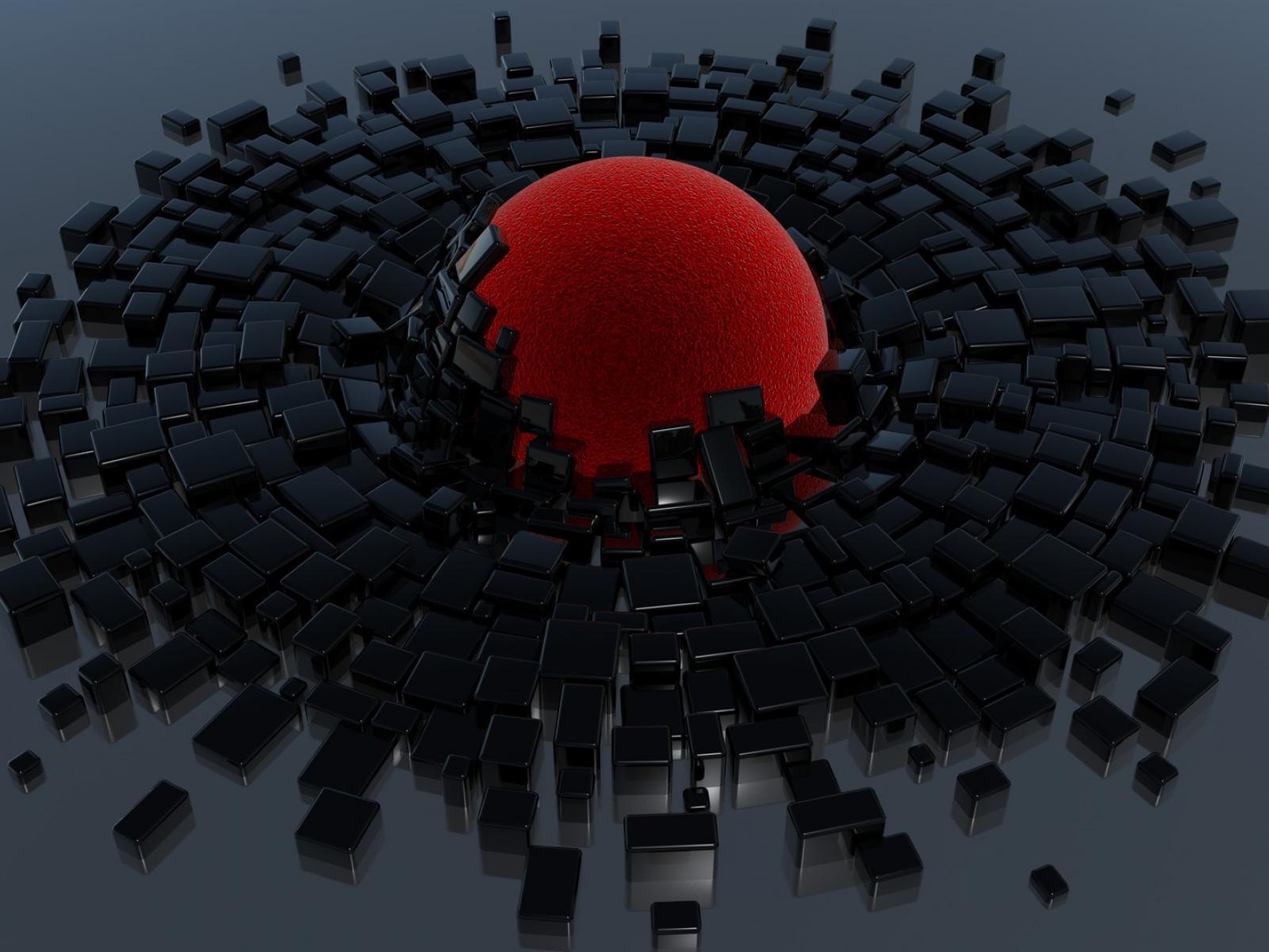 Wallpaper Red ball and black cubes