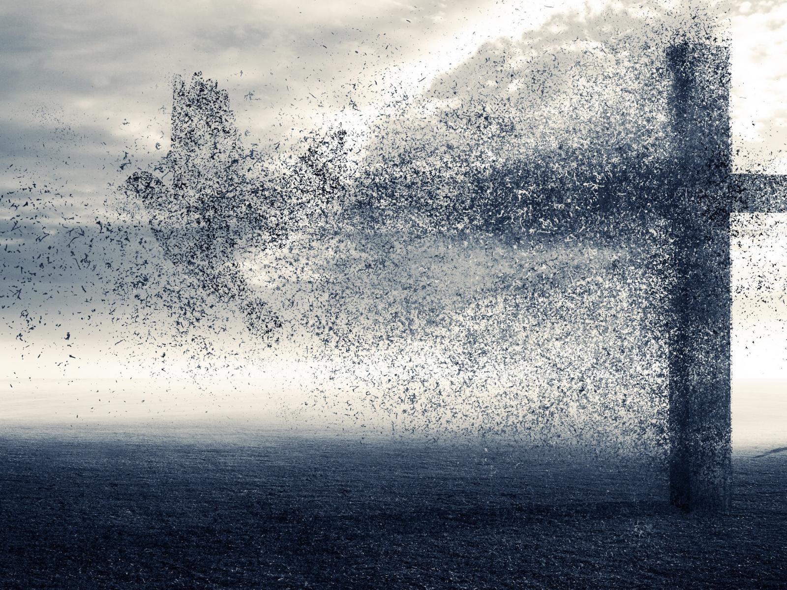 Wallpaper Lonely man, Pigeons, destruction, cross