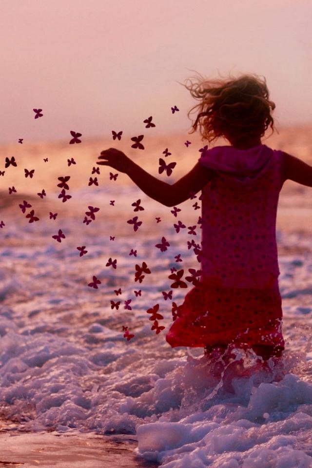 Wallpaper Little girl, Butterfly