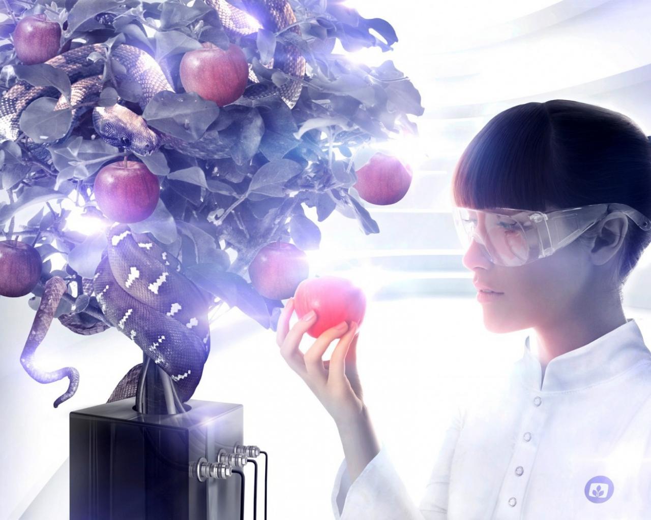 Wallpaper Trees, Snake, apples