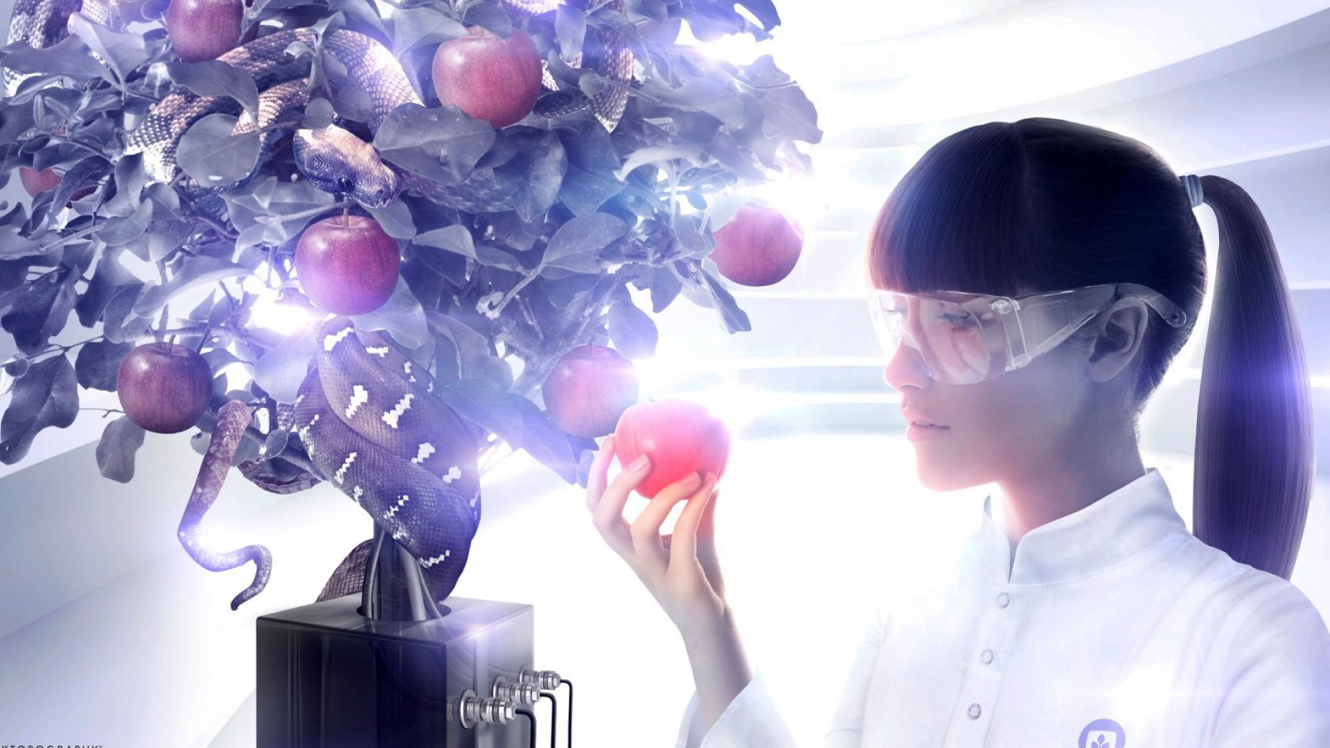 Wallpaper Trees, Snake, apples