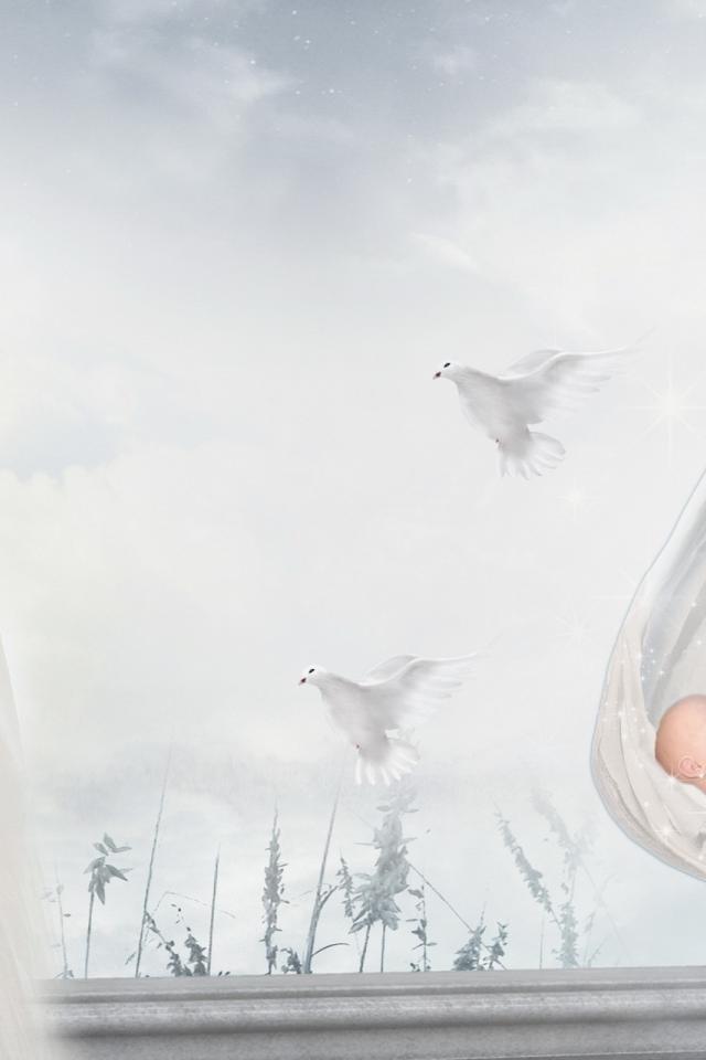 Wallpaper Child, wings, stork