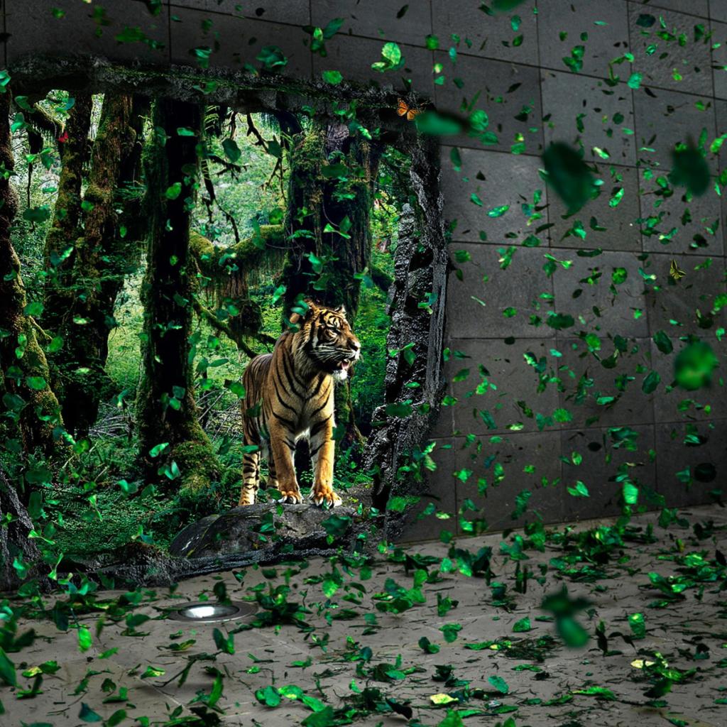 Wallpaper Tiger and wall