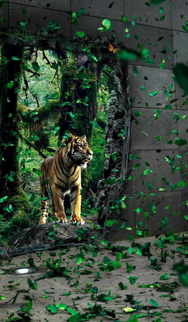 Wallpaper Tiger and wall