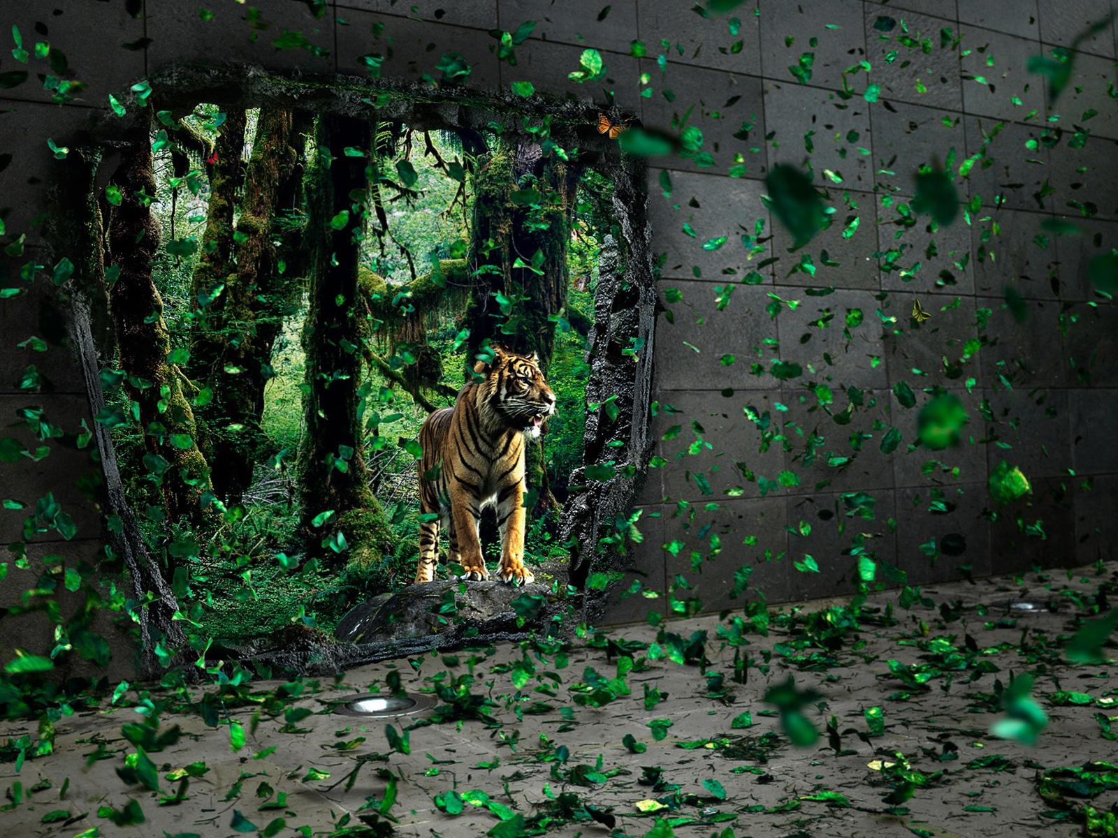 Wallpaper Tiger and wall