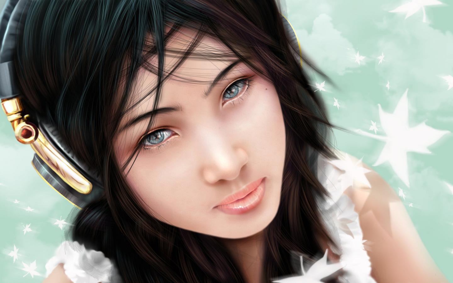 Wallpaper Girl in ear-phones
