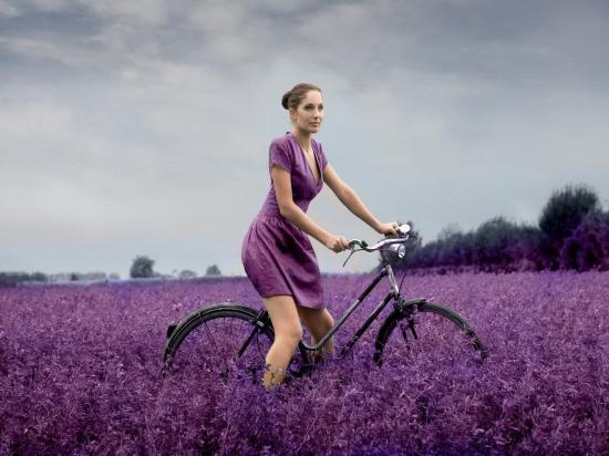Wallpaper The girl on a bicycle in the field