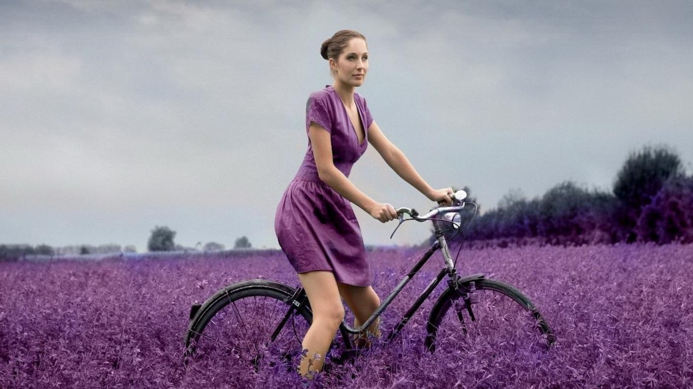 Wallpaper The girl on a bicycle in the field