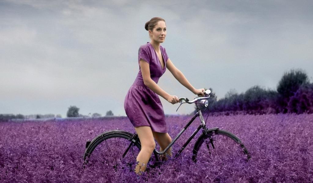 Wallpaper The girl on a bicycle in the field