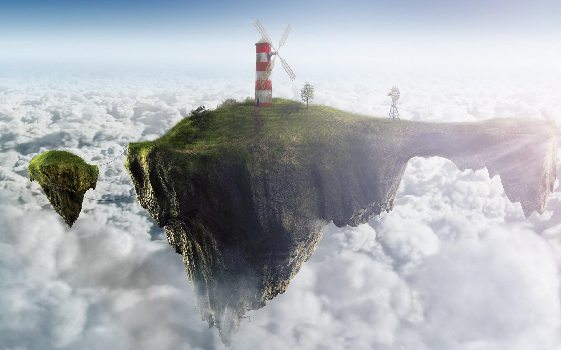 Wallpaper Windy mill on hanging island