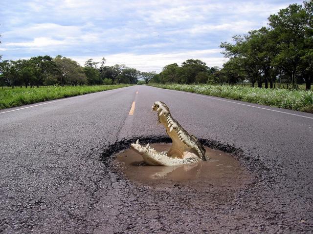 Wallpaper Crocodile on the road