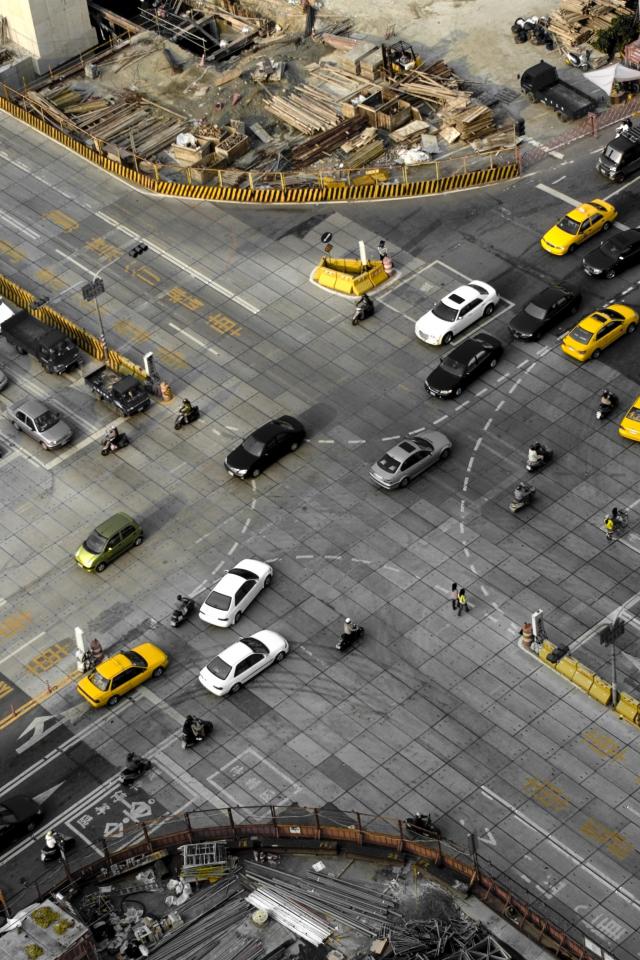 Wallpaper Taxis at the crossroads in the city, Japan