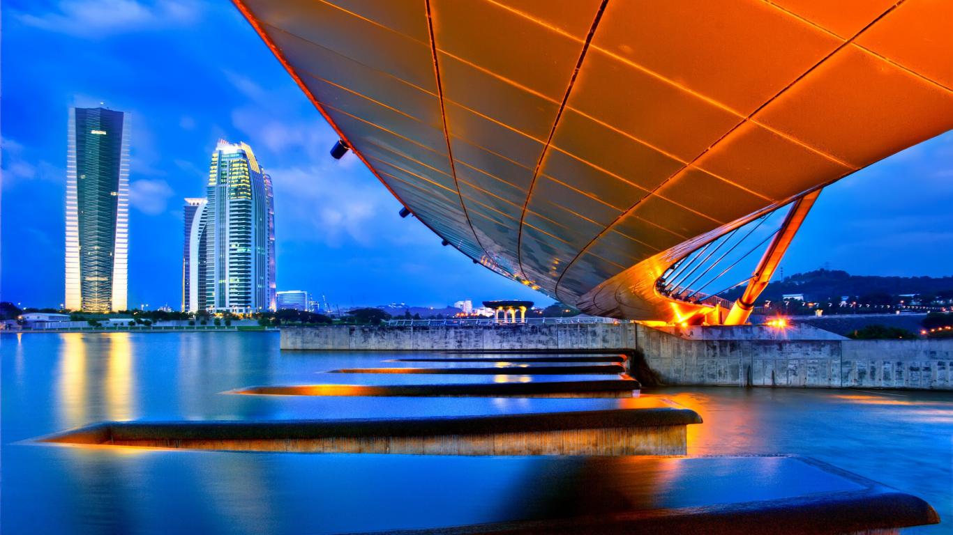 Wallpaper Vertical drop in the river in the city