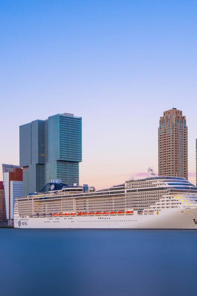 Wallpaper Liner on the background of skyscrapers in Rotterdam