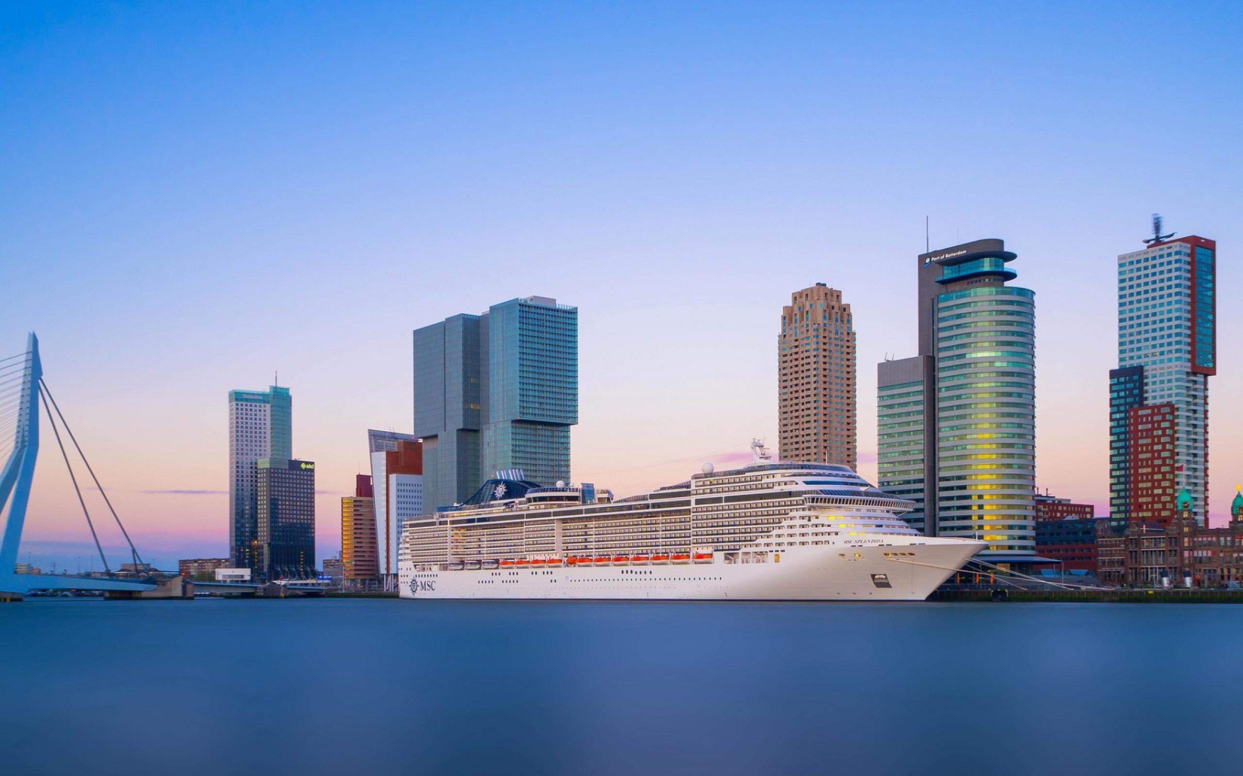 Wallpaper Liner on the background of skyscrapers in Rotterdam