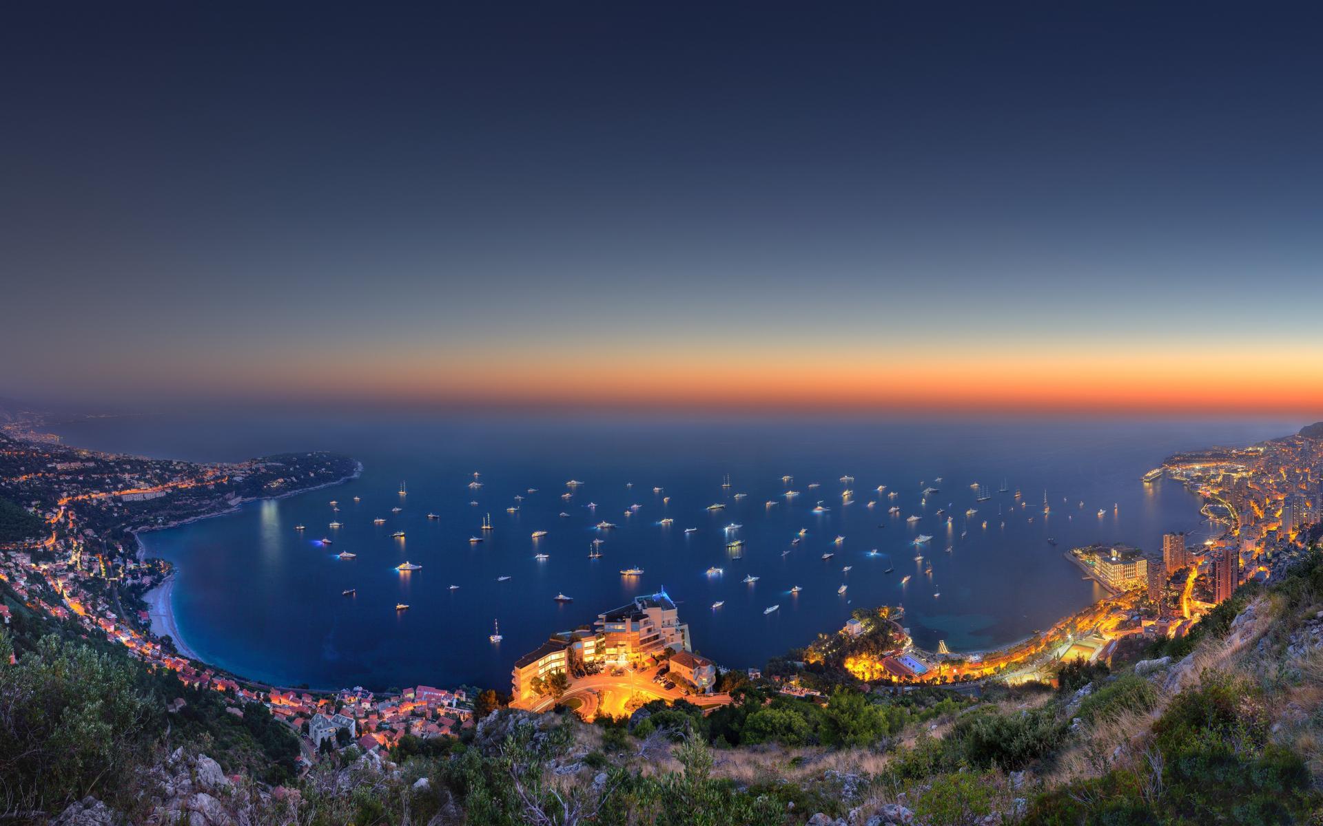 Wallpaper The lights on the boats in the bay of Monaco