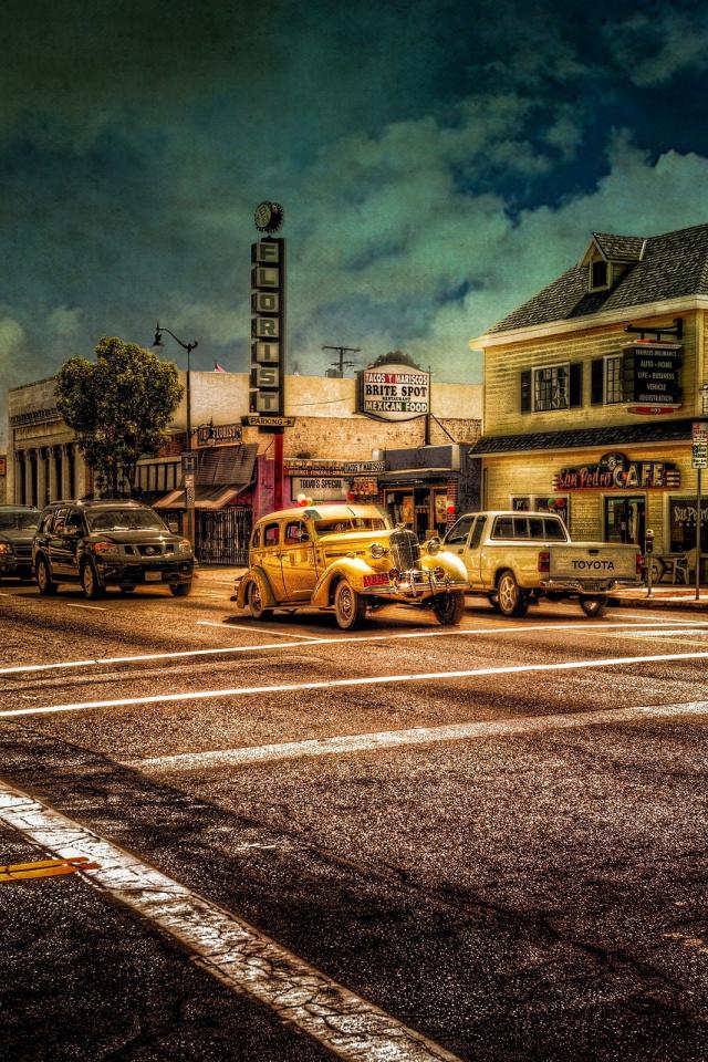 Wallpaper Cars at the traffic light in a small American town