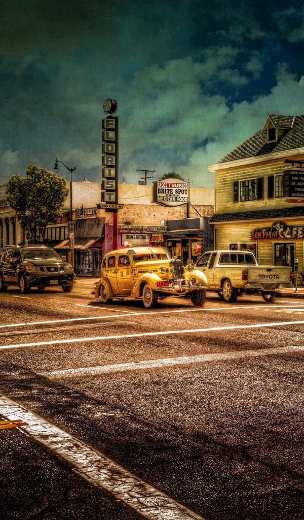 Wallpaper Cars at the traffic light in a small American town