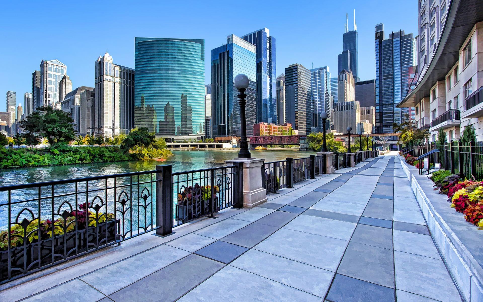 Wallpaper The pedestrian promenade in the big city
