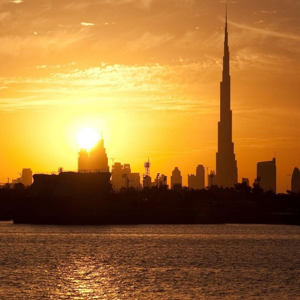 Wallpaper Silhouettes of the buildings of Dubai at sunset